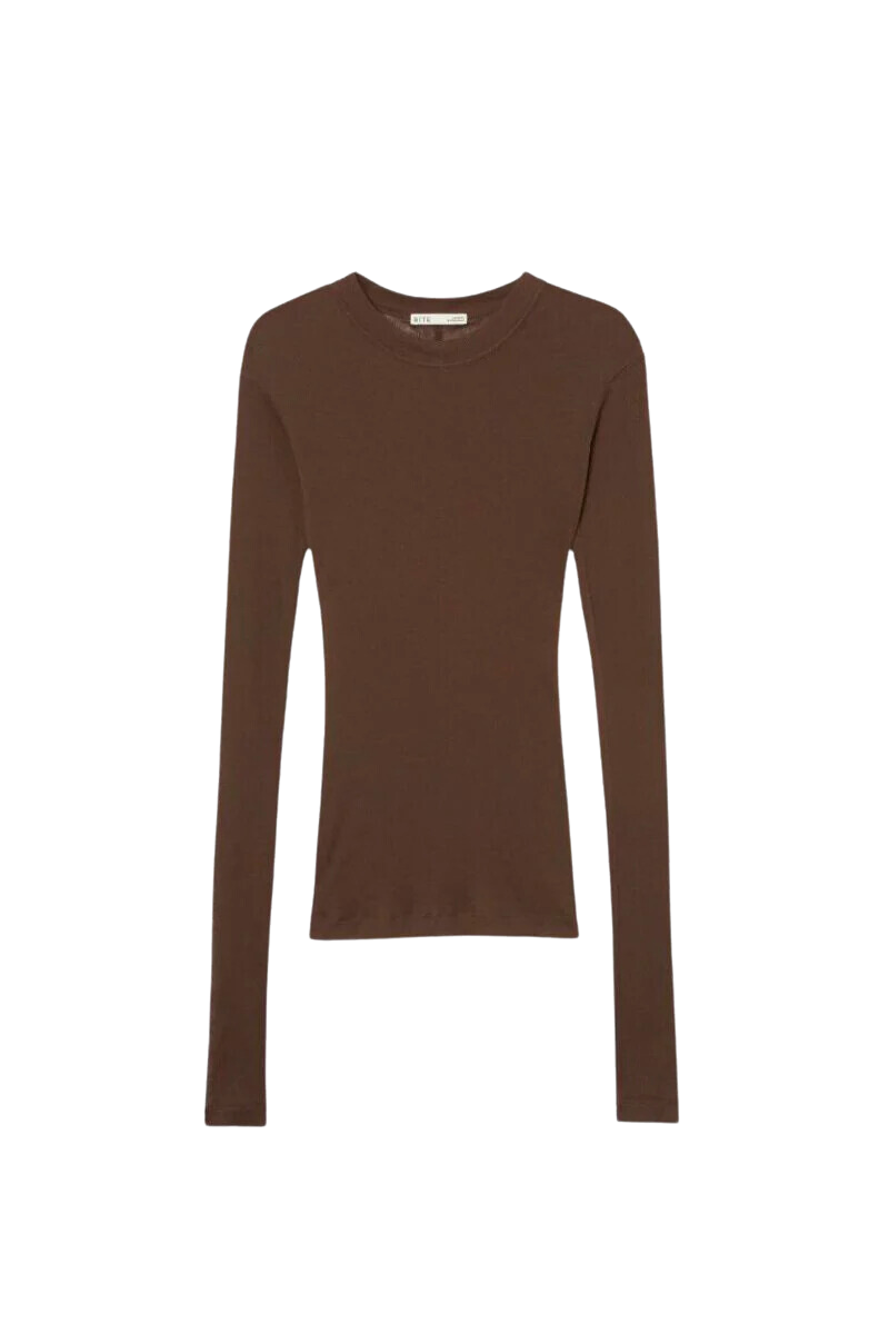 The Ribbed Organic Cotton Jersey Top from Bite Studios is a must-have for the eco-conscious fashionista. Crafted from the finest organic cotton, this top features long sleeves and a high neckline for a sleek look. The finely knitted ribbed texture gives it a soft and sheer appearance, while the hand-cut and sculpted design adds a touch of sophistication. As part of the Fall Collection, this top is made from organic, recycled, and low impact materials, making it both stylish and sustainable. Wear it with your favorite jeans for a casual look or dress it up with a skirt for a night out on the town. Upgrade your wardrobe with the Long Sleeve Organic Jersey Top and experience the perfect blend of comfort and style.