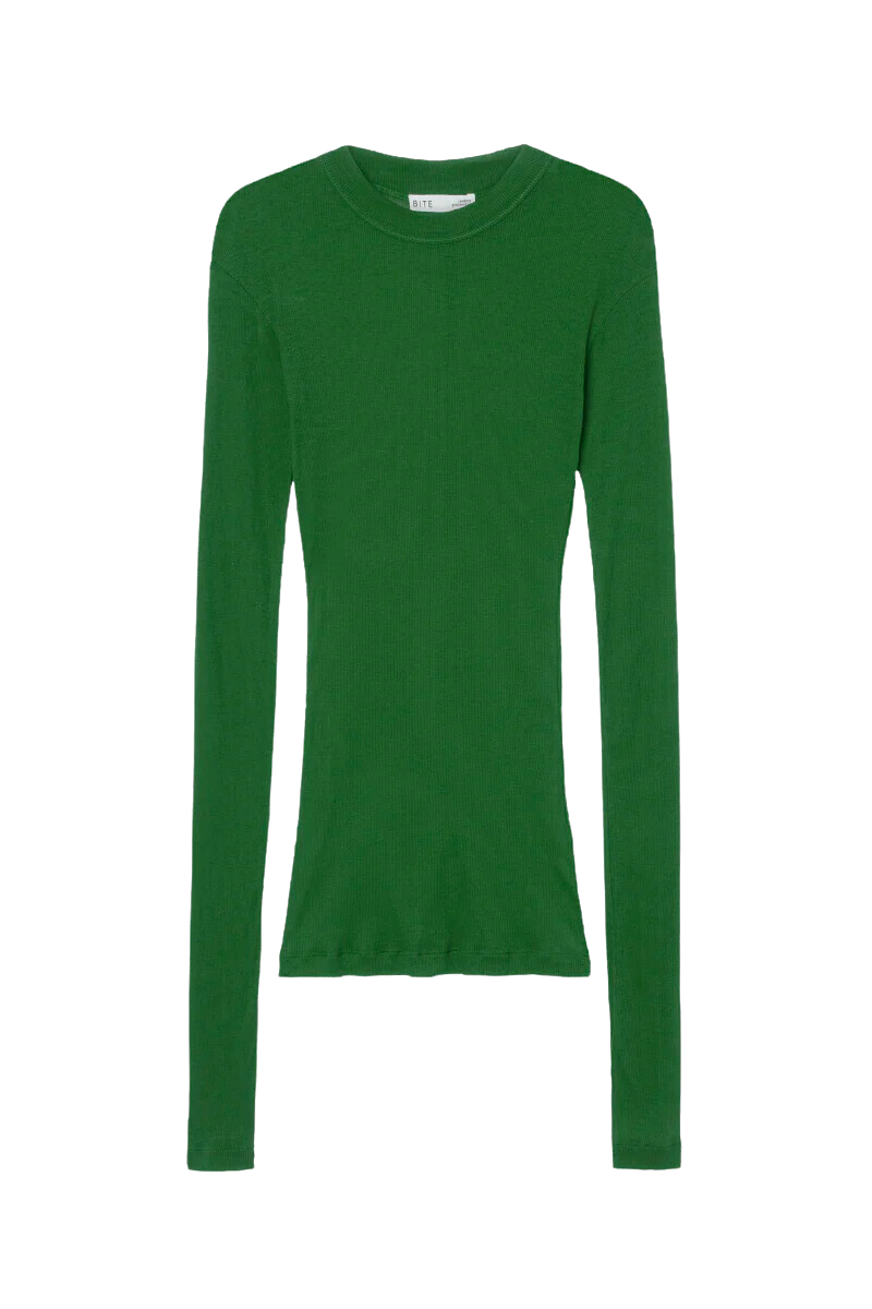 The Ribbed Organic Cotton Jersey Top from Bite Studios is a must-have for the eco-conscious fashionista. Crafted from the finest organic cotton, this top features long sleeves and a high neckline for a sleek look. The finely knitted ribbed texture gives it a soft and sheer appearance, while the hand-cut and sculpted design adds a touch of sophistication. As part of the Fall Collection, this top is made from organic, recycled, and low impact materials, making it both stylish and sustainable. Wear it with your favorite jeans for a casual look or dress it up with a skirt for a night out on the town. Upgrade your wardrobe with the Long Sleeve Organic Jersey Top and experience the perfect blend of comfort and style.