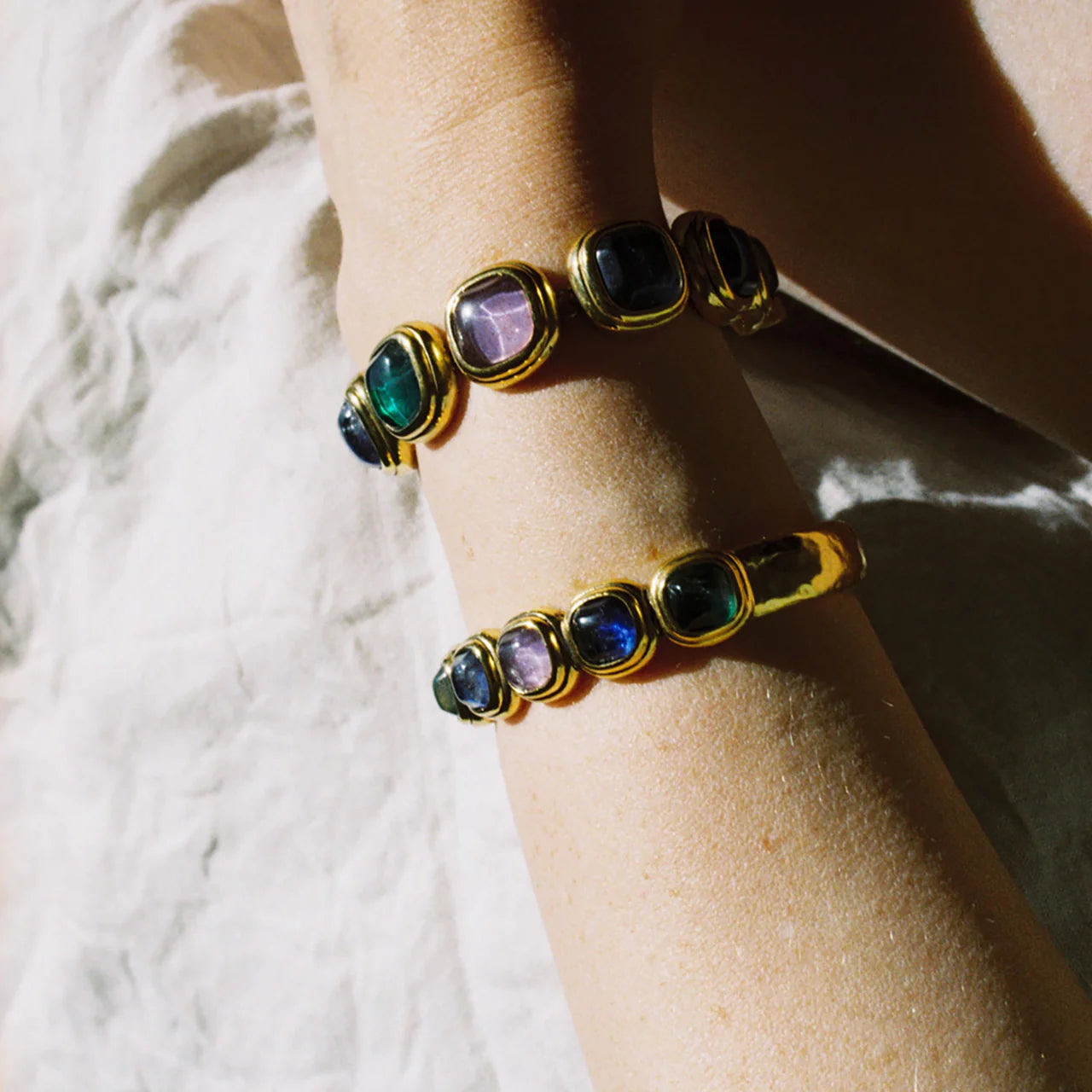 Renaissance Bangle (Harmony Ultramarine Blue) by Goossens. A vivid blend of color and classic form, this cuff bracelet set with multicolored rock crystals brings artistic harmony to the wrist.