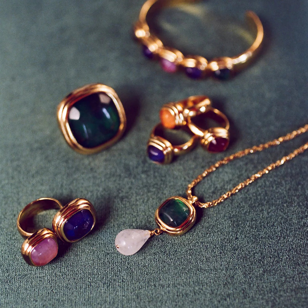 24k Gold-Dipped Brass, Natural Rock Crystal