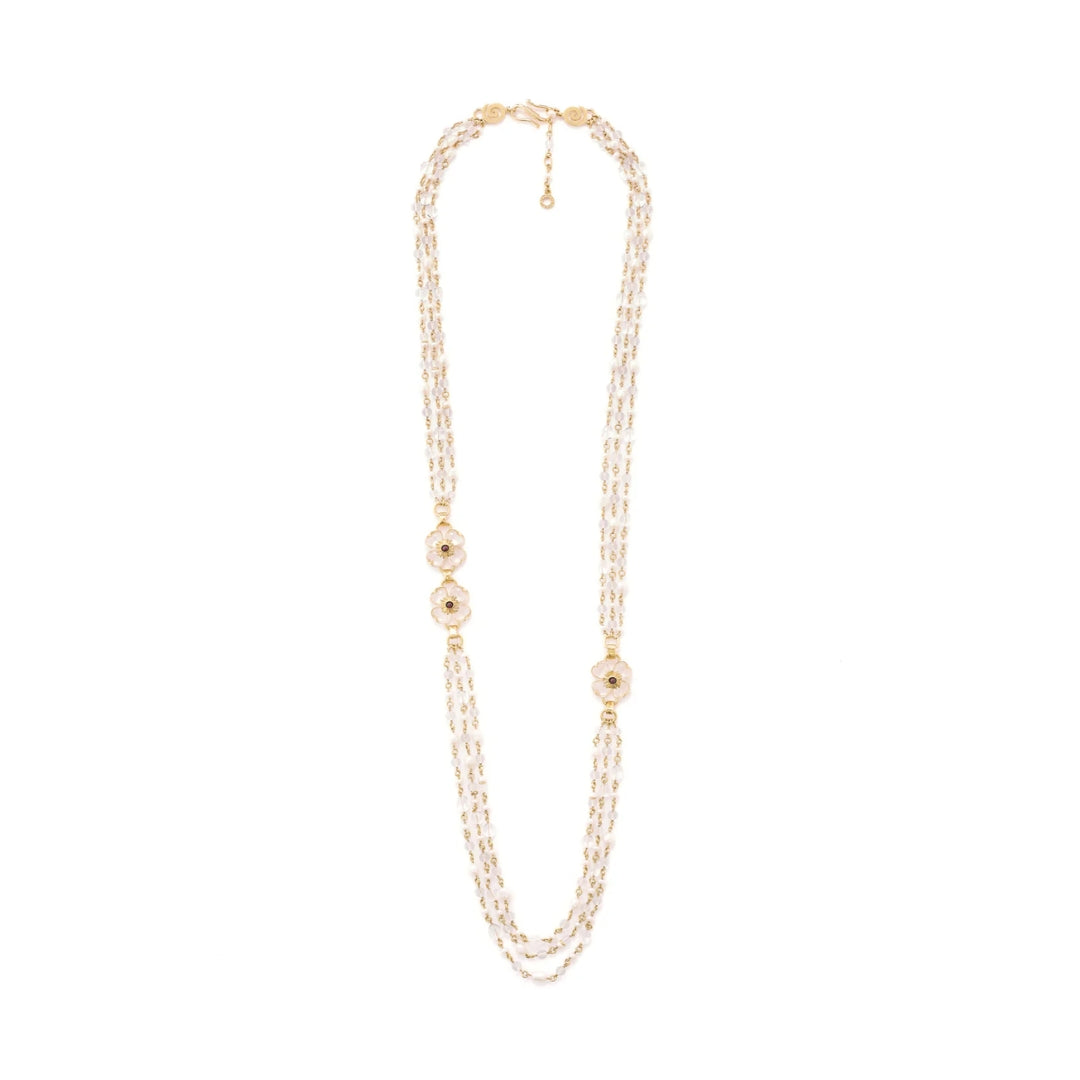 Clover Long Necklace Natural Rock Crystal