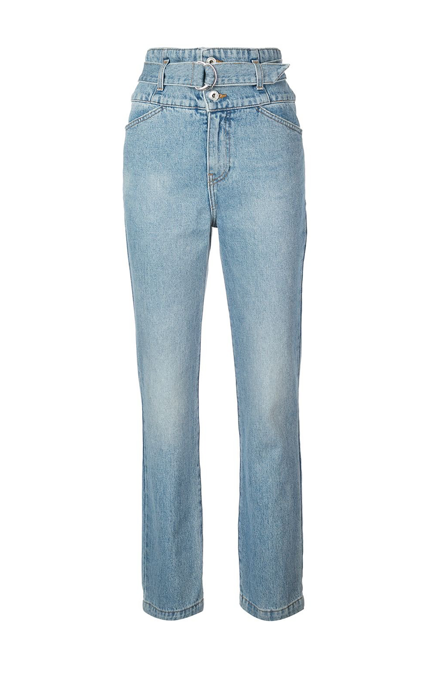 Romance is subtly declared in Simkhais creations. Clothes scrupulously crafted for real women in pursuit of excellence and flexibility to independent personalities.These medium indigo cotton blend belted high waist jeans from Jonathan Simkhai featuring a high waist, a double button and zip fly and belted buckle waist fastening.