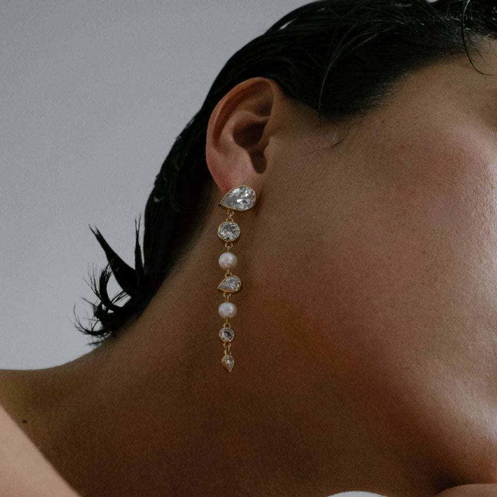 Like stars twinkling in the midnight sky, these earrings capture light and gleam beguilingly from every angle. The interplay of the pearls' soft luster and the zirconias’ bright fire creates an effect both striking and soothing. Frame your face with these elegant yet whimsical earrings and feel wrapped in beauty as delicate as a sea breeze and as stunning as a sunrise.