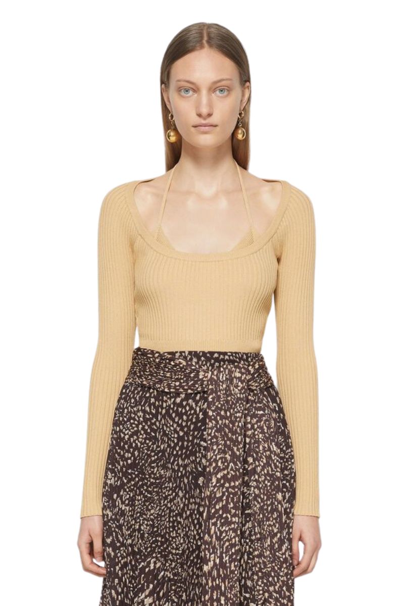 Jonathan Simkhais collection allows you to easily embrace an effortless ensemble. The Jayline Scoop Neck Pullover is crafted from soft ribbed knit and has a layered designed with a detachable bralette underlay. Pair it back to easy denim and sandals.