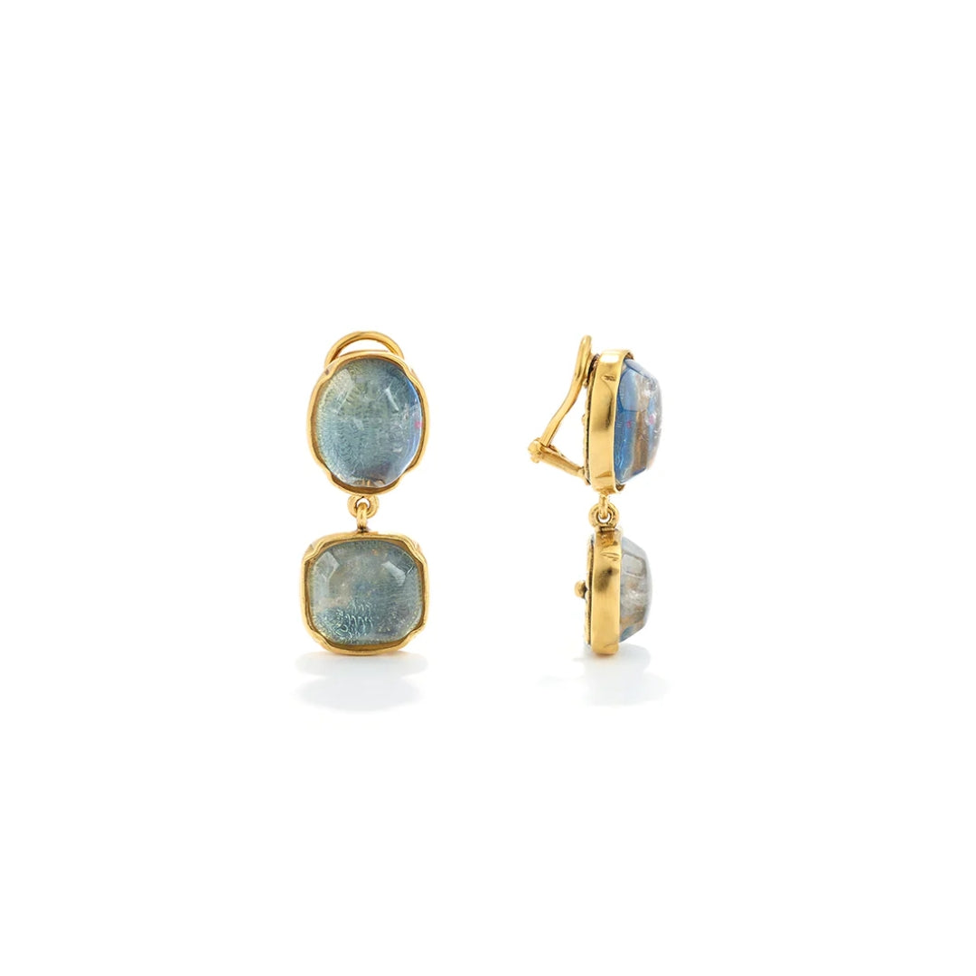 Cabochons Two Pendants Earrings by Goossens are a stunning addition to any jewelry collection. Featuring two elegantly layered cabochon stones, these earrings exude sophistication and charm. Crafted with a luxurious gold setting, they showcase a beautiful interplay of colors, making each pair unique. Perfect for both casual and formal occasions, these earrings are designed to catch the light and draw attention. With their timeless elegance, Cabochons Two Pendants Earrings effortlessly elevate your style, adding a touch of glamour to any outfit. Embrace the beauty of exceptional craftsmanship with these exquisite earrings.
