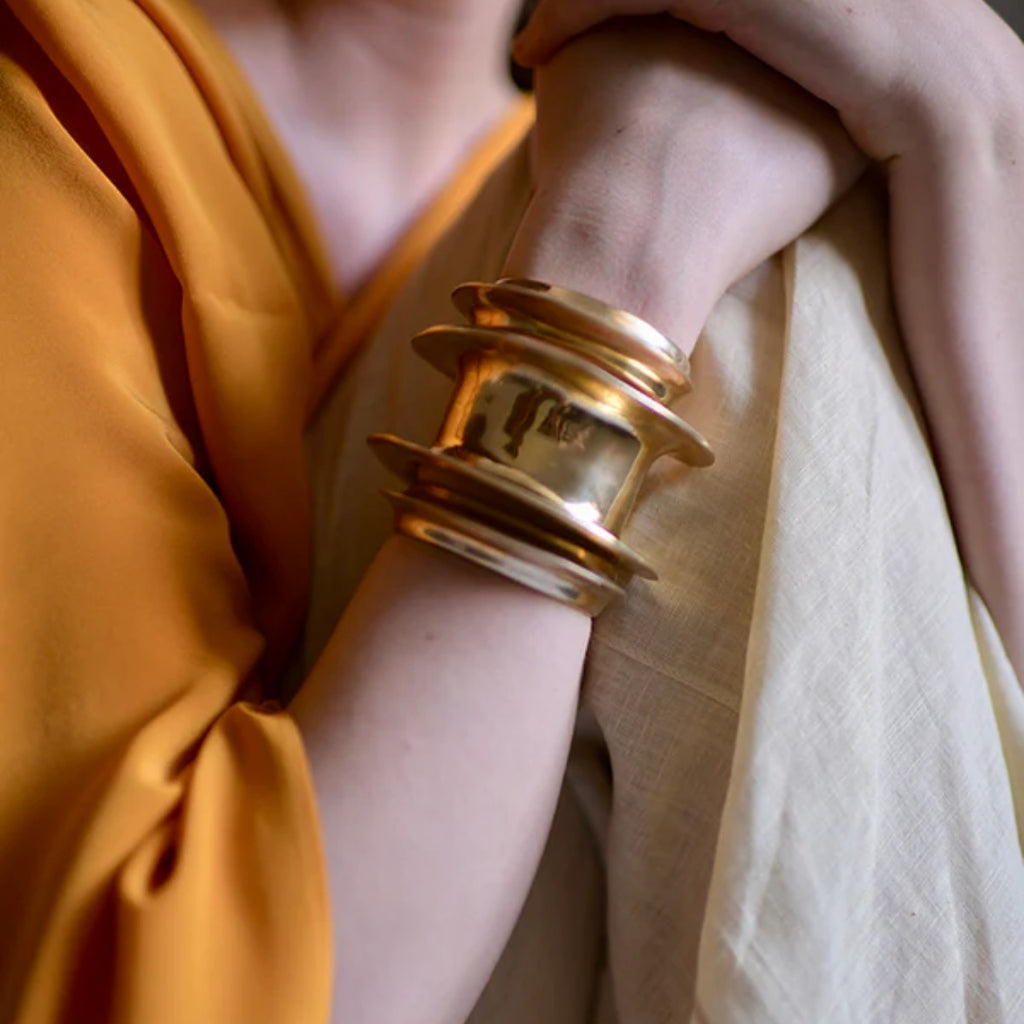 Laran Cuff Brass by Ariana Boussard-Reifel elegantly encircles the wrist with its minimal yet captivating design. The subtle peak at the center adds visual intrigue, making it a timeless wardrobe staple that seamlessly complements any outfit.