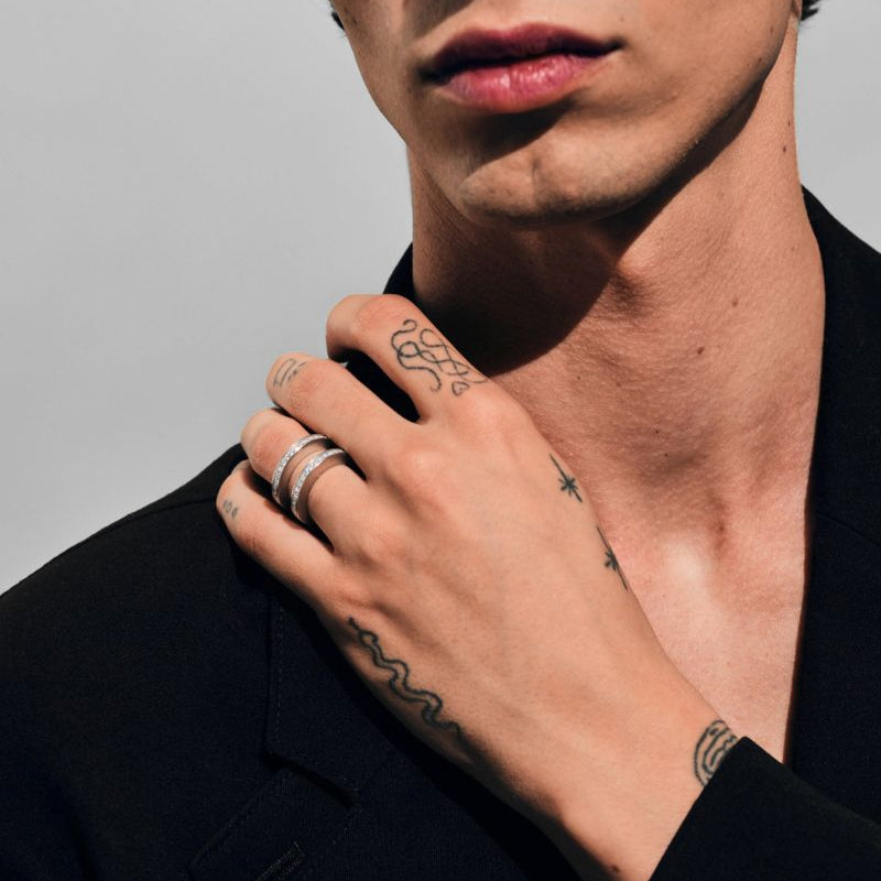 This ring is ideal for those who value luxury and want to make a statement with their accessories. Whether worn solo or stacked with other pieces, the Vault Double Clear White in 925 sterling silver will enhance any outfit with a touch of sophistication.